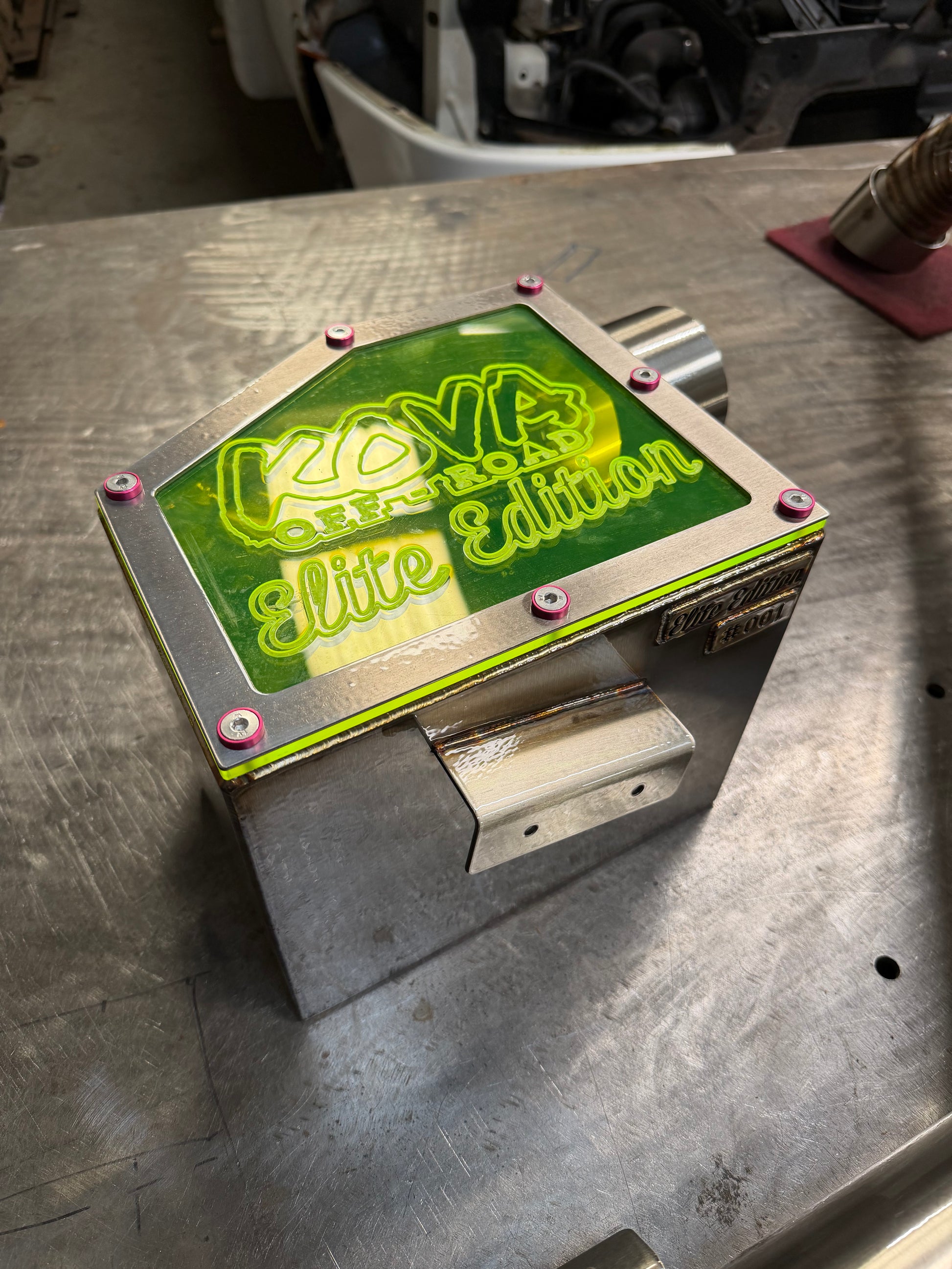 • Transparent Flo Yellow airbox lid, laser-engraved with the KOVA Elite design